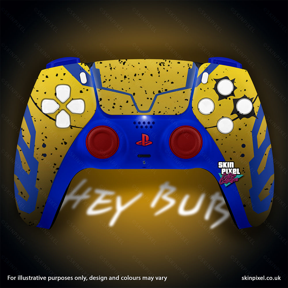 Deadpool: “Yeah, yeah, we get it. It’s all about Wolvie. But let’s spice it up, so it's not as bland as your SEO. Picture this: the controller is wrapped in that classic yellow and blue, like Logan’s been running around slashing things up in your living room. You know, minus the claw marks on your furniture—or your face.”